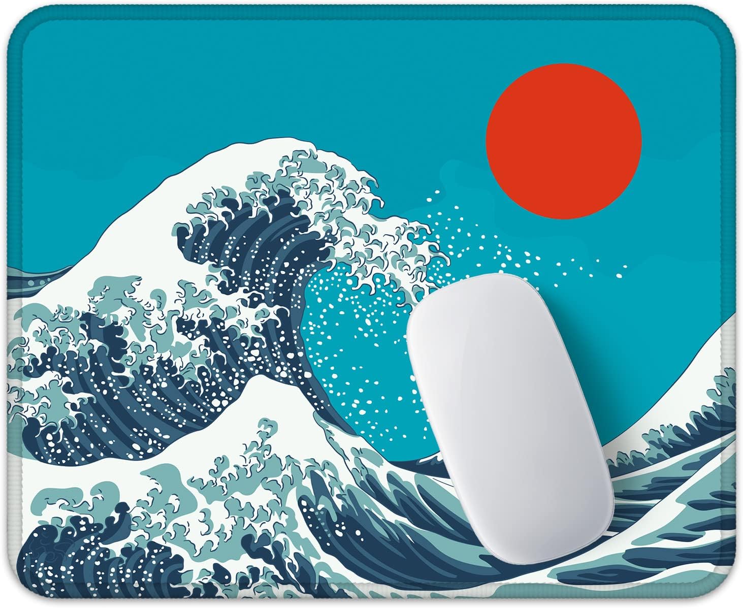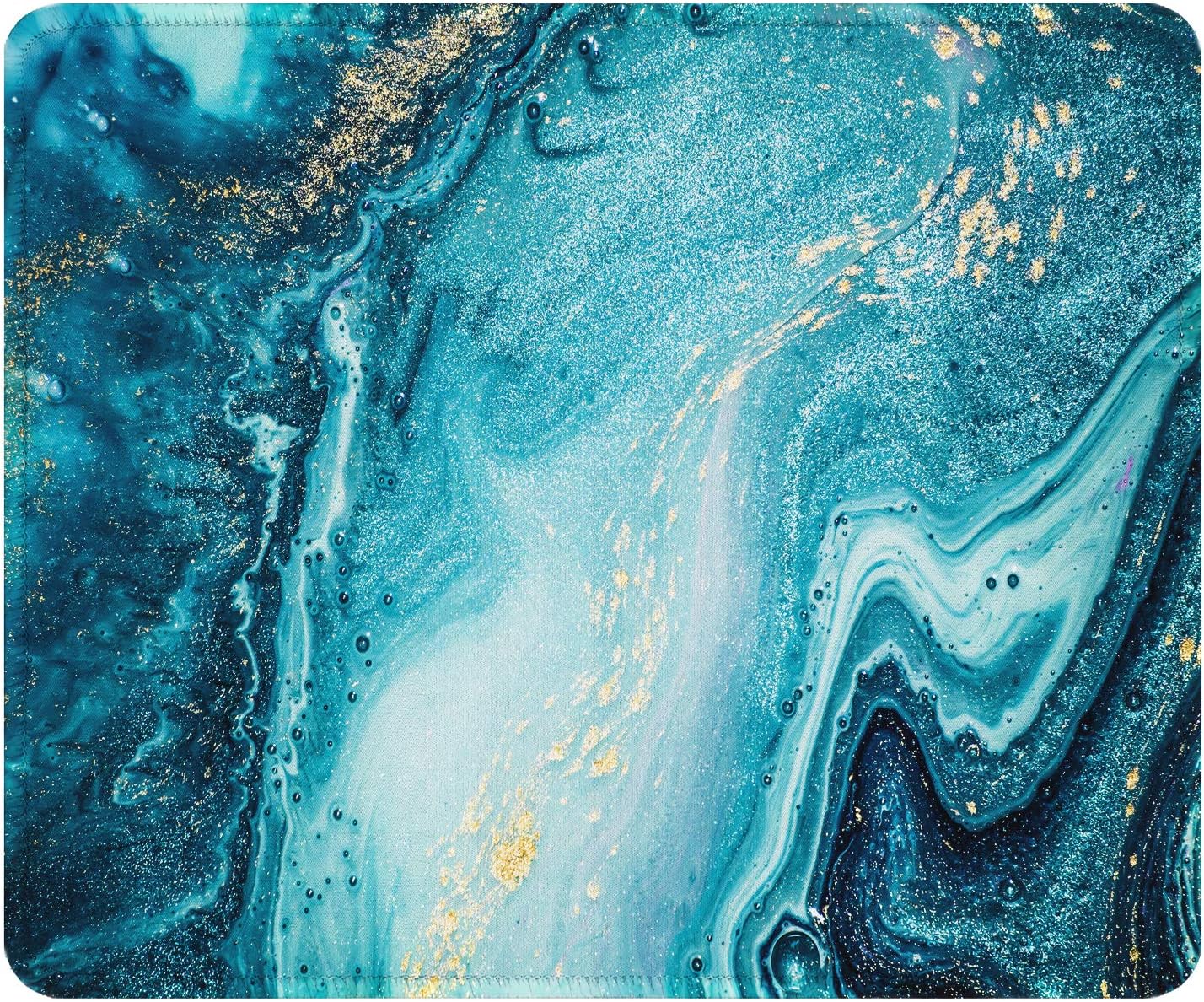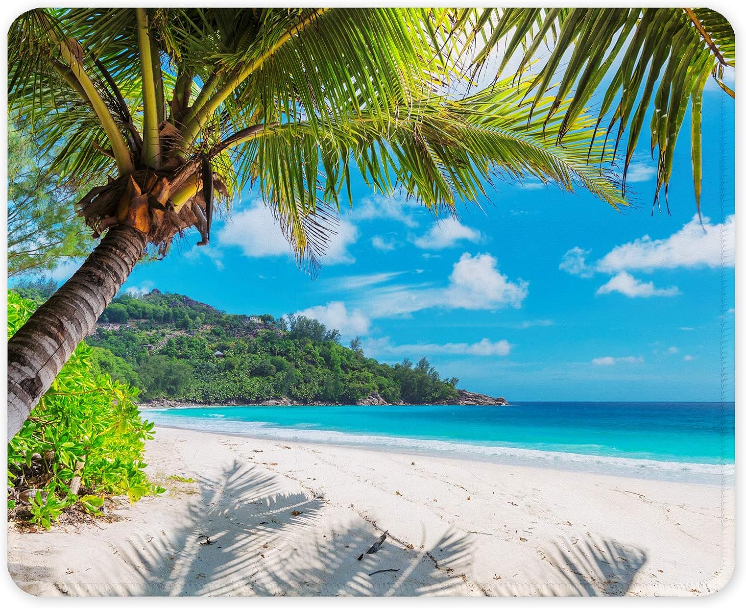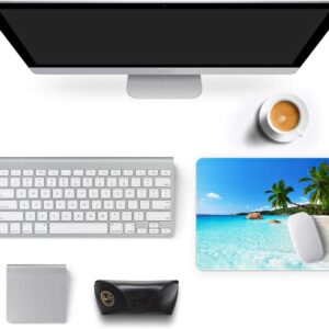 Auhoahsil Mouse Pad, 12 x 10 in Summer Beach Theme Computer Mouse Pad for Desk, Premium-Textured Non-Slip Rubber Stitched Edges Waterproof Square Gaming Mouse Mat for Gaming Work Wireless Mice, Blue