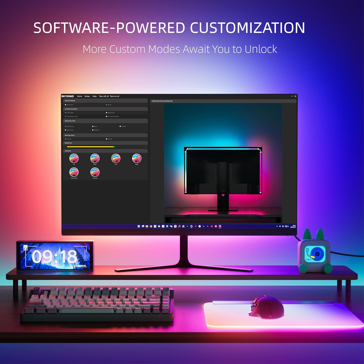 Skydimo is a computer lighting control system that uses computer software to control the lighting effects of background atmosphere lights, computer case lights, keyboard lights, mouse pad lights and computer desk lights.