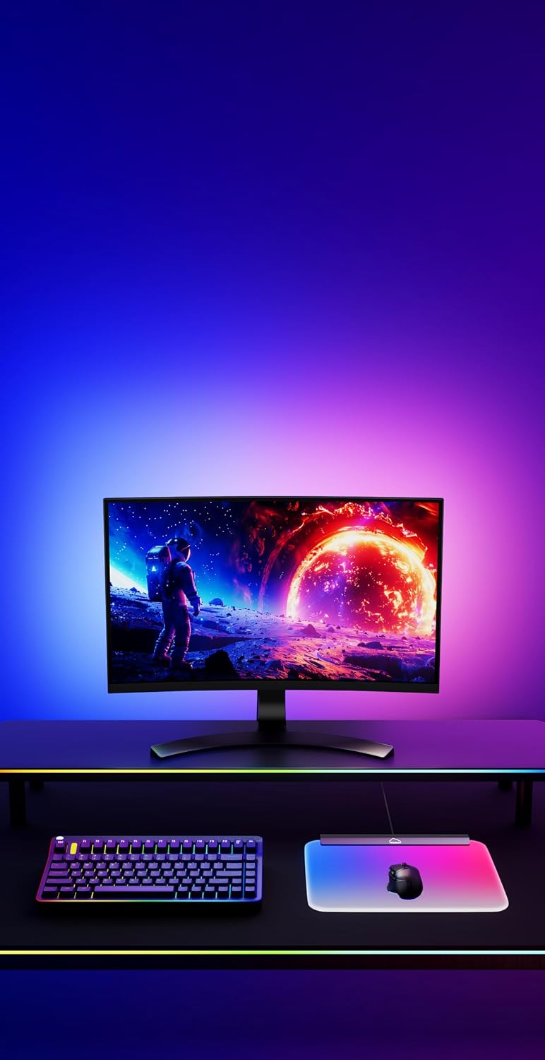 Experience immersive gaming with our RGB mousepad, featuring dynamic lighting sync with your screen and music. Customize over 100 effects via free software. The high-transparency PC surface ensures smooth, precise tracking, reinforced by durable aluminum edges. An anti-slip base keeps it stable during intense sessions. Enjoy hassle-free setup with 10-second plug-and-play via USB 3.0, compatible with Windows 10/11 & macOS. A perfect gift for gamers and tech enthusiasts.