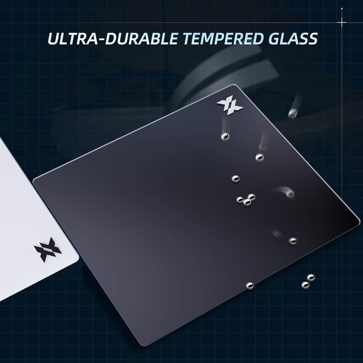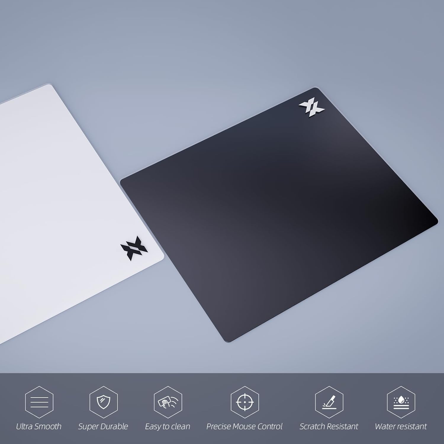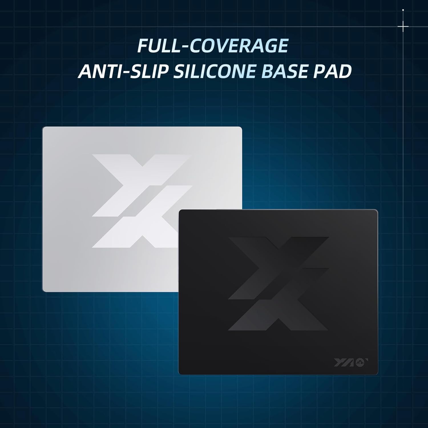 Featuring a polished glass surface with micron-level etching technology, this gaming mouse pad delivers ultra-high tracking precision optimized for competitive esports scenarios. Equipped with a full-coverage non-slip silicone suction base for zero-shift stability during intense gameplay. Seamless CNC-machined edges and a full-size 500x400mm (19.7"x15.7") surface provide battlefield-scale maneuverability, meeting esports players' demands for expansive, precise control.