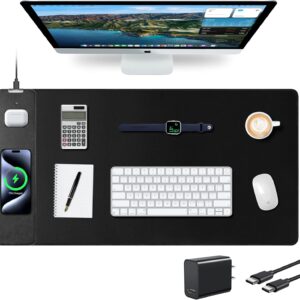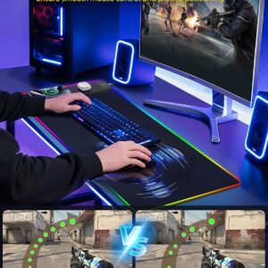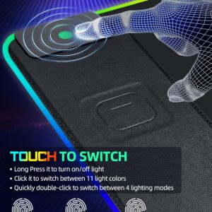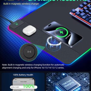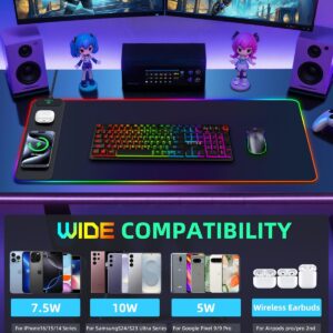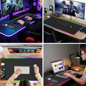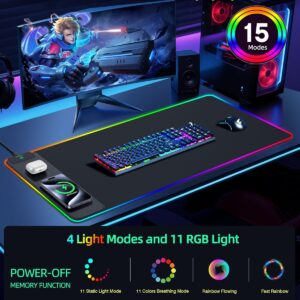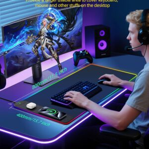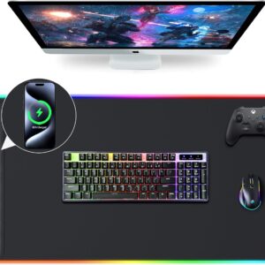 Mouse Pad with Wireless Charging, RGB Gaming Desk Mat, 31.5″x15.7″ Large XXL Desk Pad, 15 Lighting Modes, Non-Slip Mouse Mat, Waterproof Computer Keyboard Pad, Black with 20W PD Power Adapter