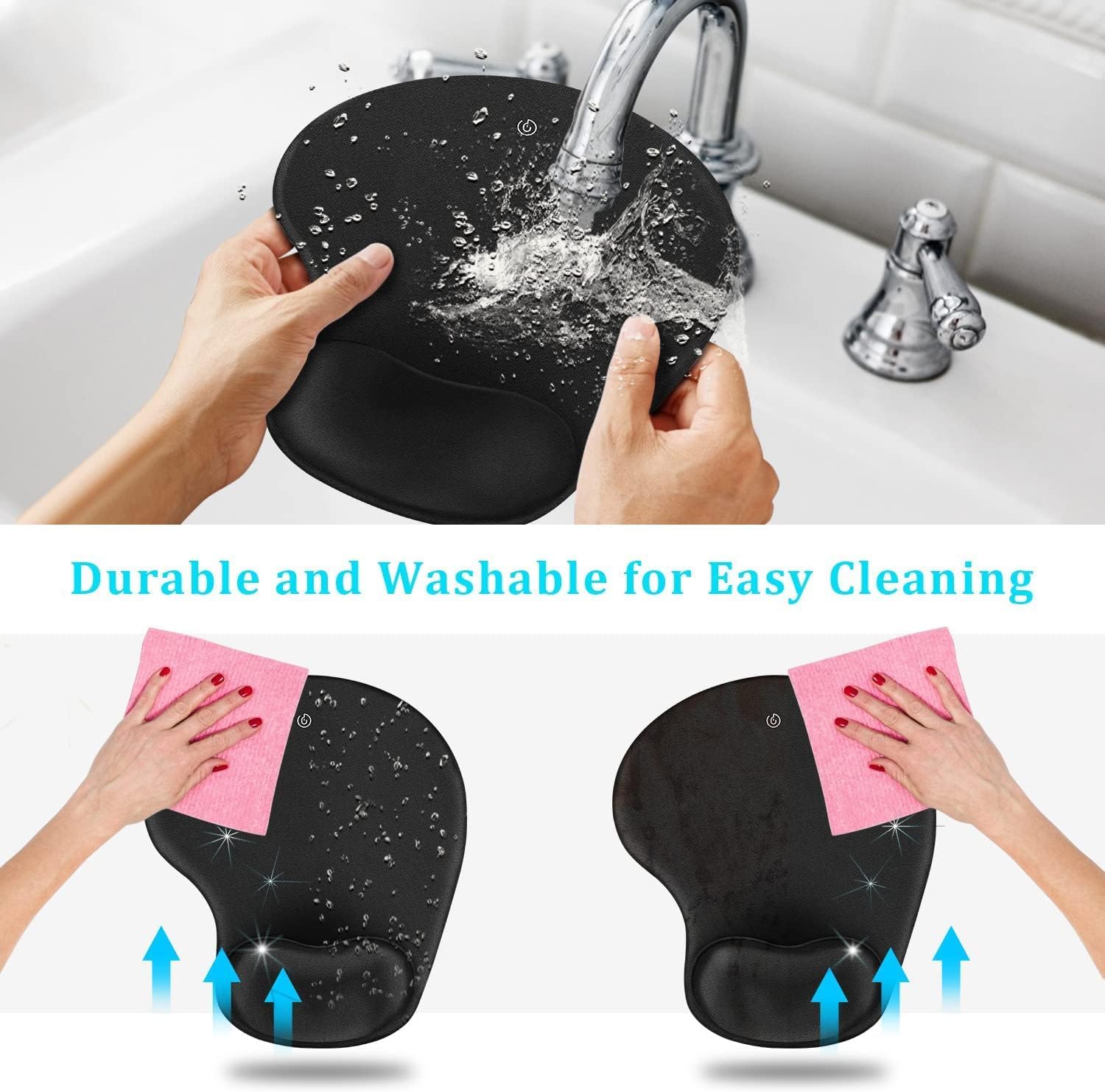Soqool Mouse Pad, 6 Pack Ergonomic Mouse Pads with Comfortable Gel Wrist Rest Support and Lycra Cloth, Non-Slip PU Base for Easy Typing Pain Relief, Durable and Easy to Clean, Black